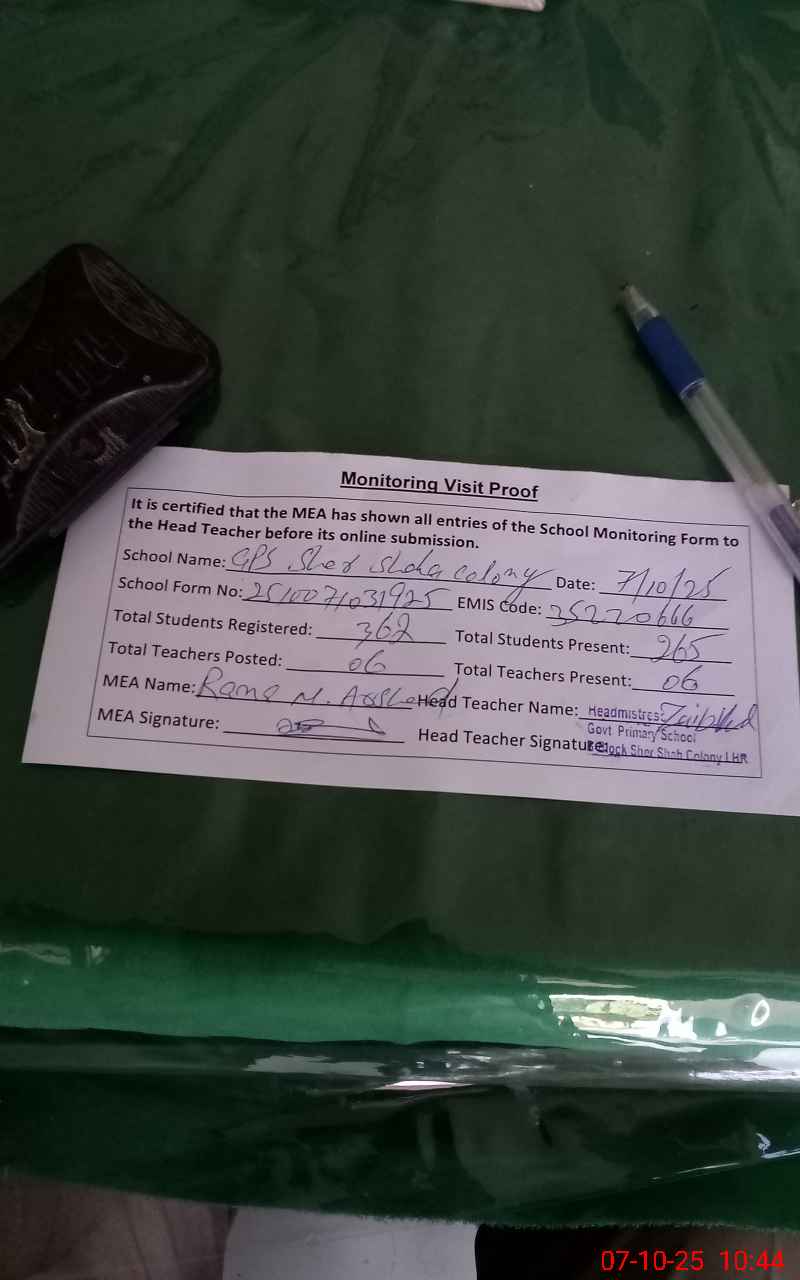 | EMIS Code: 35220666 | Name of School: GPS SHER SHAH COLONY B-BLOCK | |||