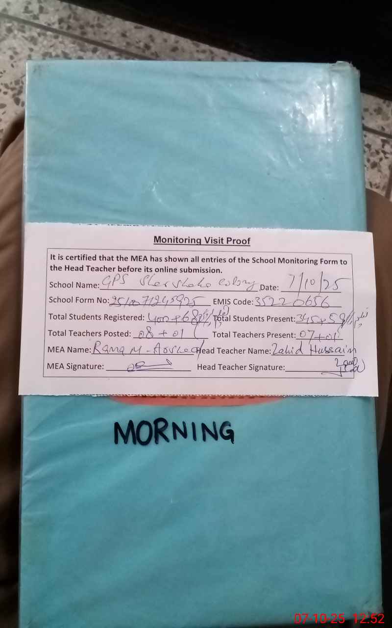 | EMIS Code: 35220656 | Name of School: GPS SHER SHAH COLONY RAIWIND ROAD | |||