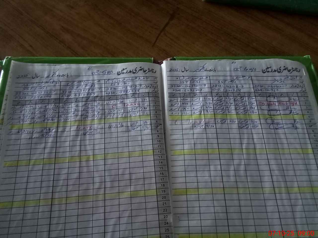 | CNIC | Full Name | Designation | R/C | Absence During Last Calender Month |