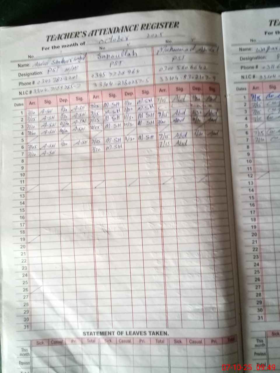 | Name: AB**** SH**** SA**** Designation: (School Headmaster's/Headmistress's) PST Phone/Cell Number: 03**** |