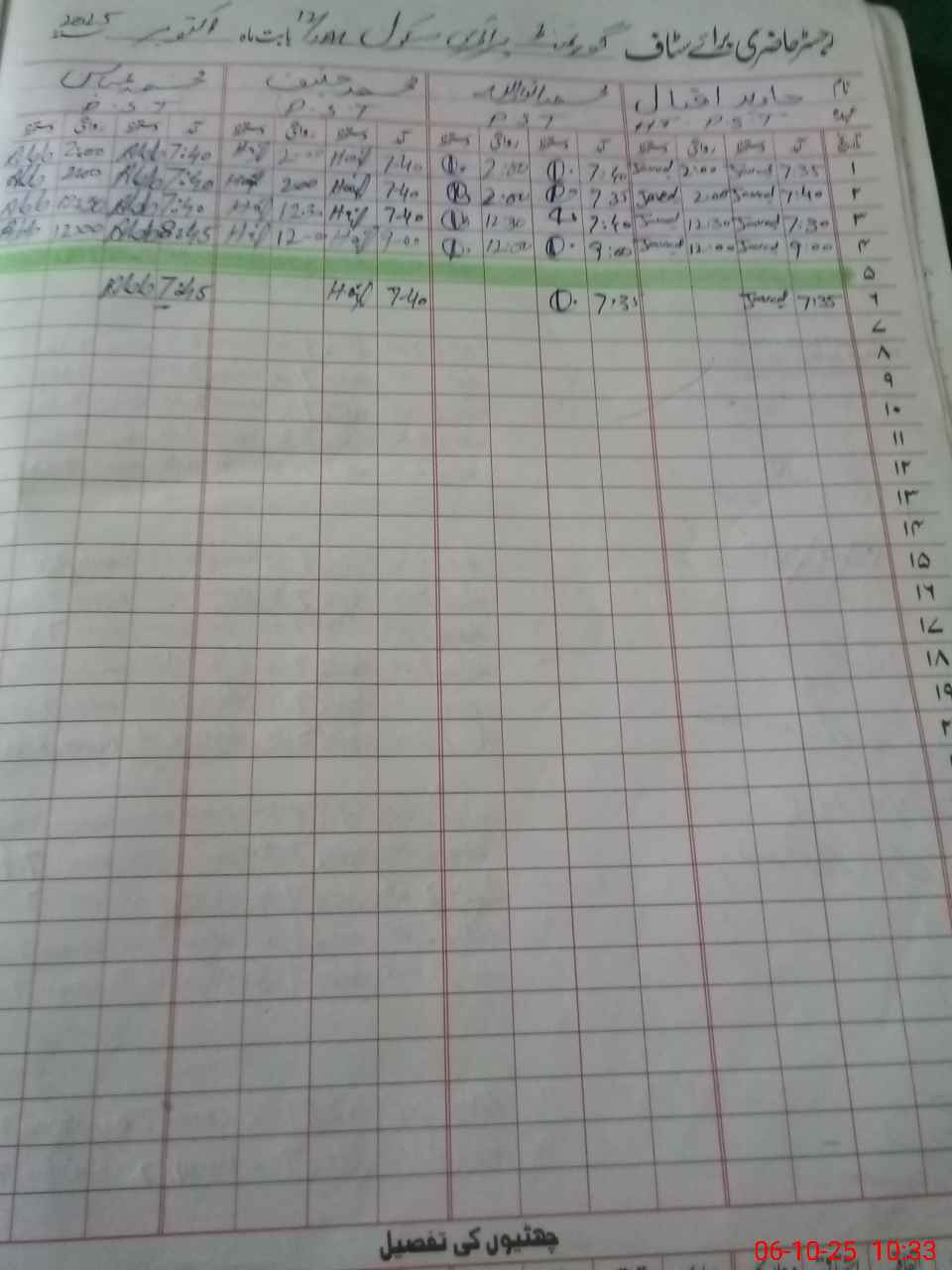 | CNIC | Full Name | Designation | R/C | Absence During Last Calender Month |