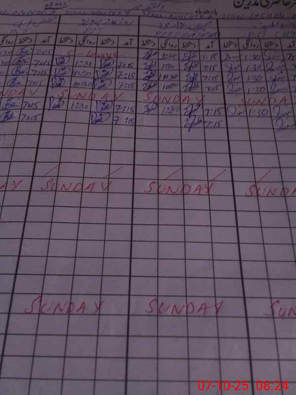 | CNIC | Full Name | Designation | R/C | Absence During Last Calender Month |