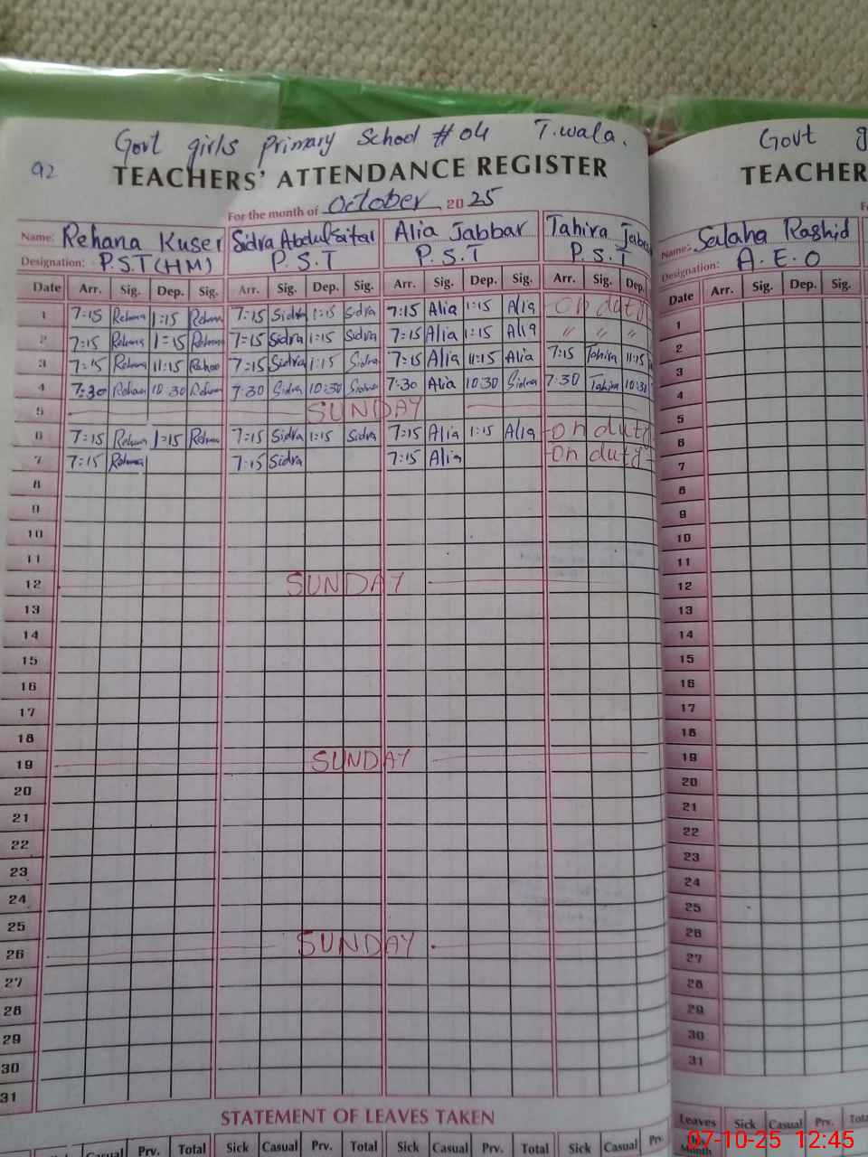 | 33**** | Ta**** Ja**** | PST | Regular | 0 | 0 | 0 | 0 | 0 | 0 | 0 | 0 | 0 | Exam Duty |