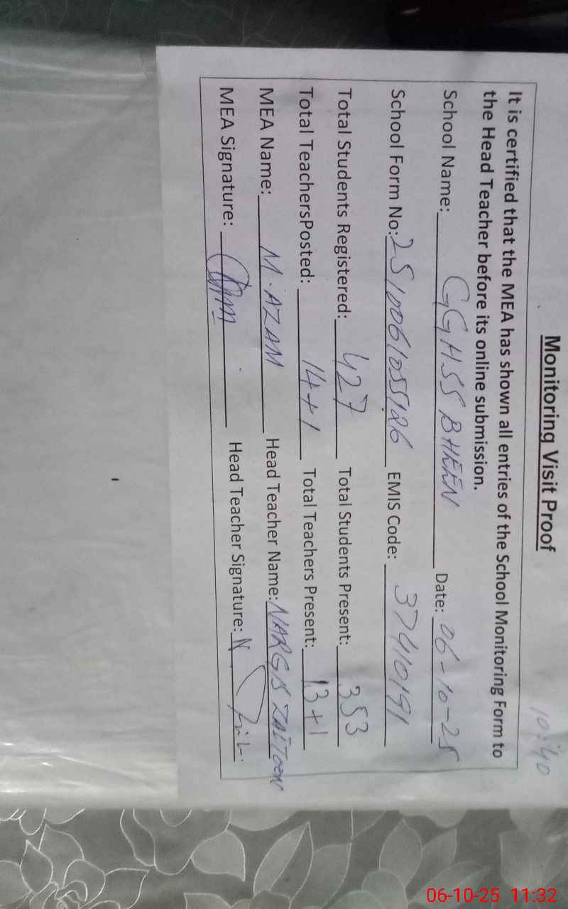 | EMIS Code: 37410191 | Name of School: GGHSS BHEEN | |||