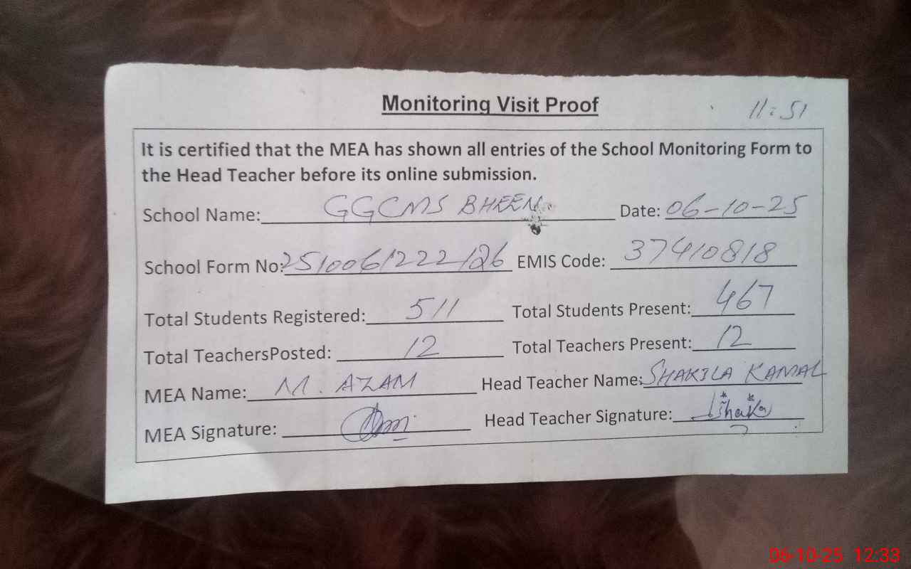 | EMIS Code: 37410818 | Name of School: GGCMS BHEEN | |||