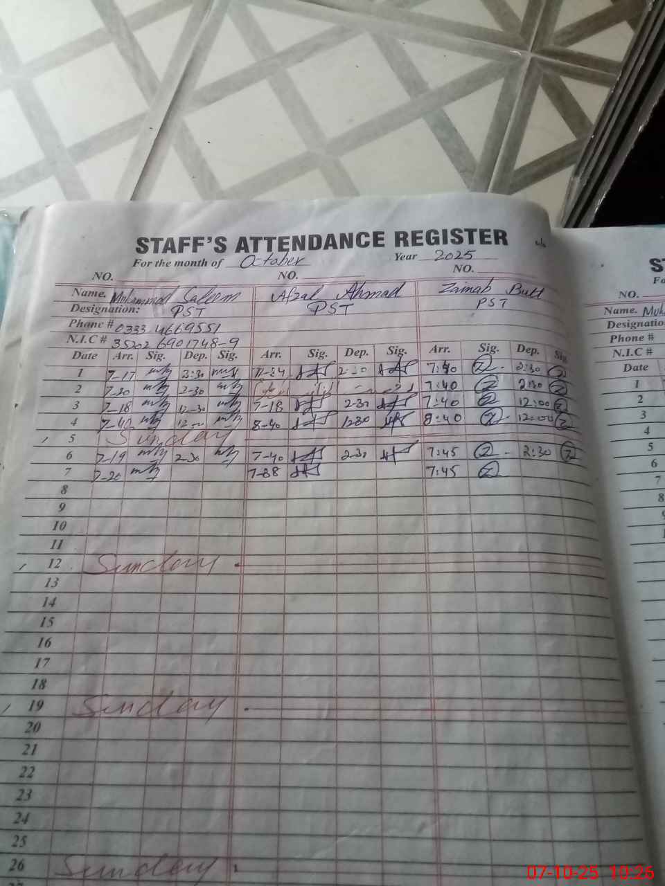 | Name: MU**** SA**** Designation: (School Headmaster's/Headmistress's) PST Phone/Cell Number: 03**** |