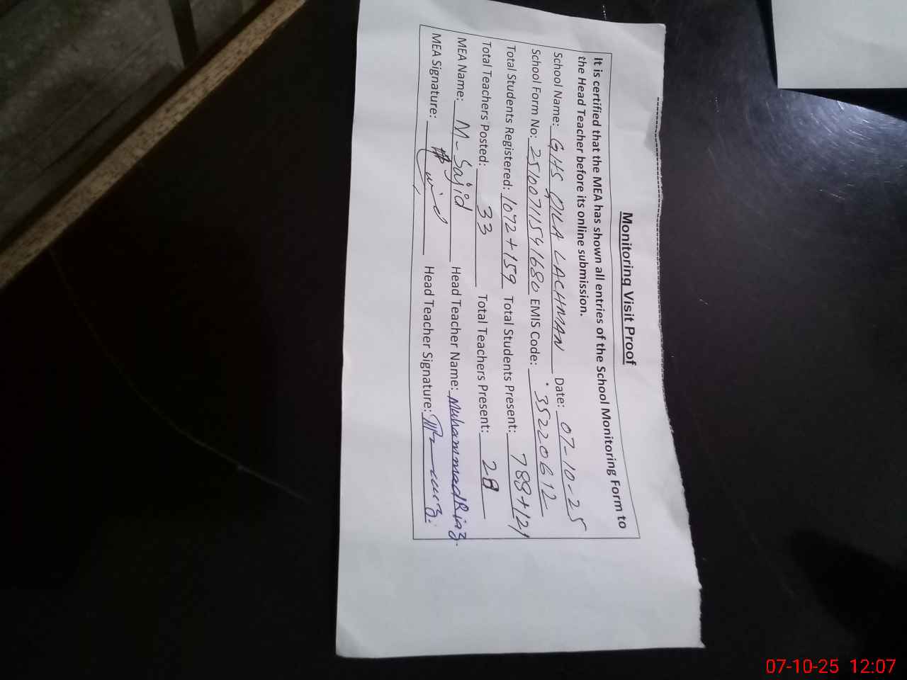 | Certified that this School was Inspected by the Undersigned MEA/DMO Today and the Information Stated Above is as Per Record. | |||||
