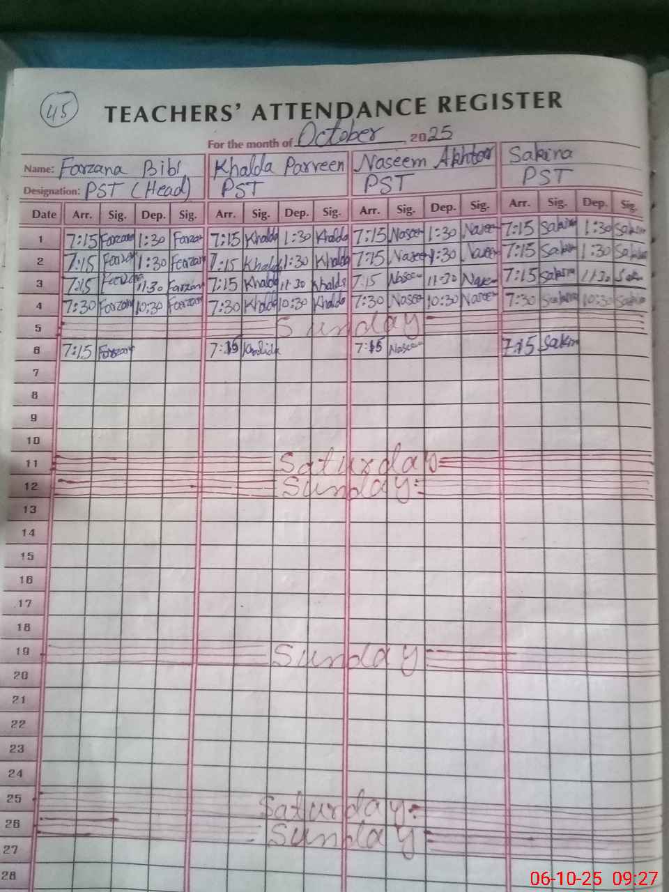 | Name: FA**** BI**** Designation: (School Headmaster's/Headmistress's) PST Phone/Cell Number: 03**** |