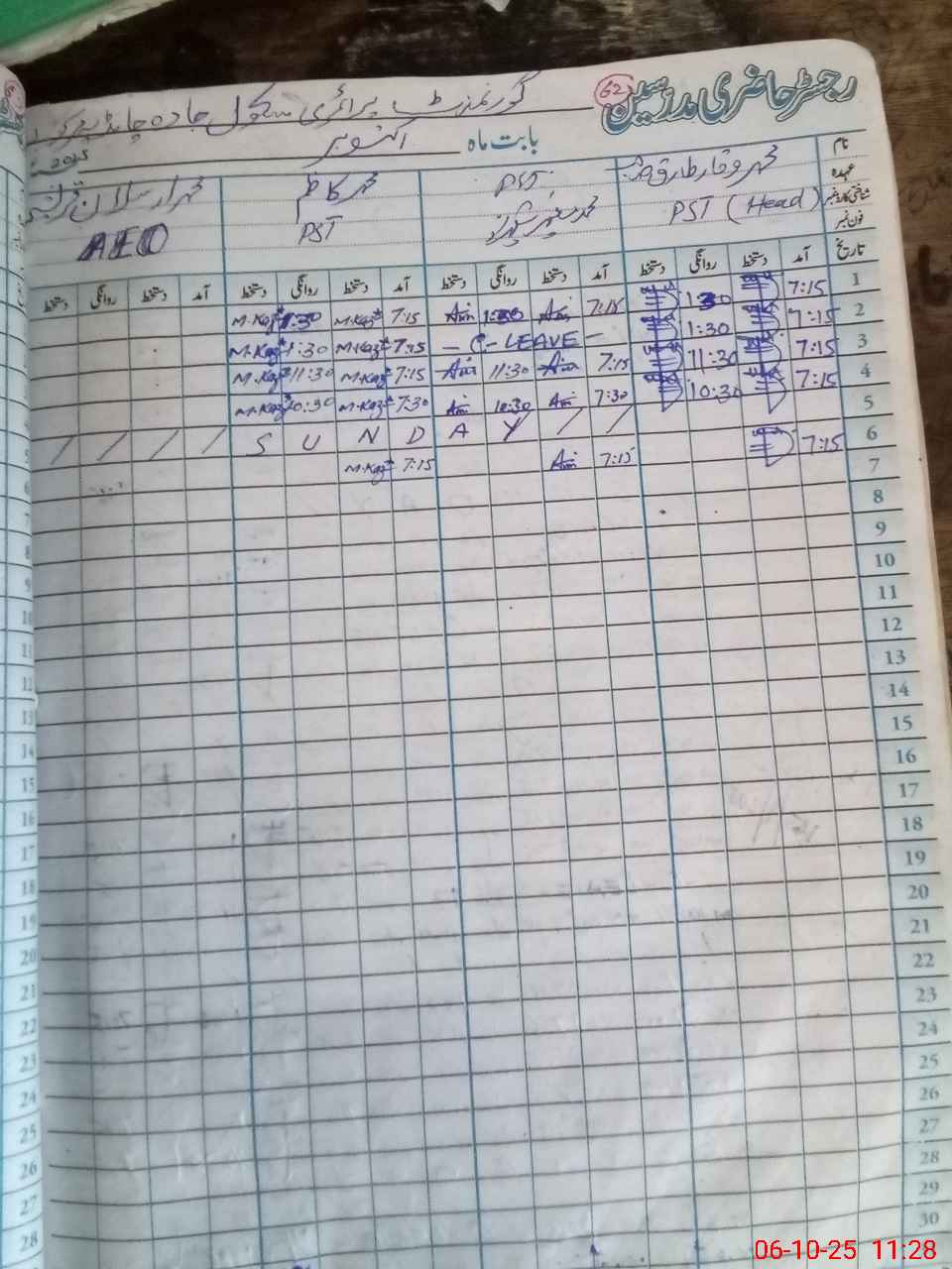 | CNIC | Full Name | Designation | R/C | Absence During Last Calender Month |