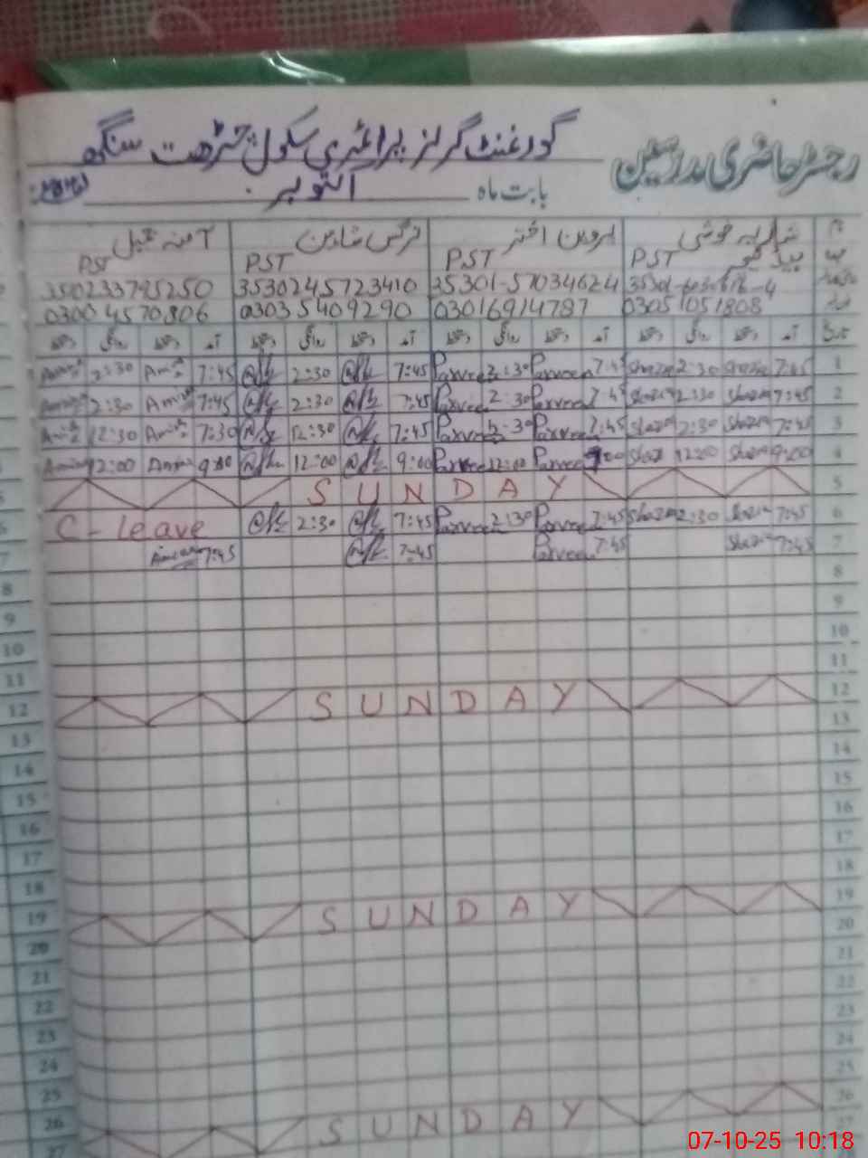 | Name: SH**** KH**** Designation: (School Headmaster's/Headmistress's) PST Phone/Cell Number: 03**** |