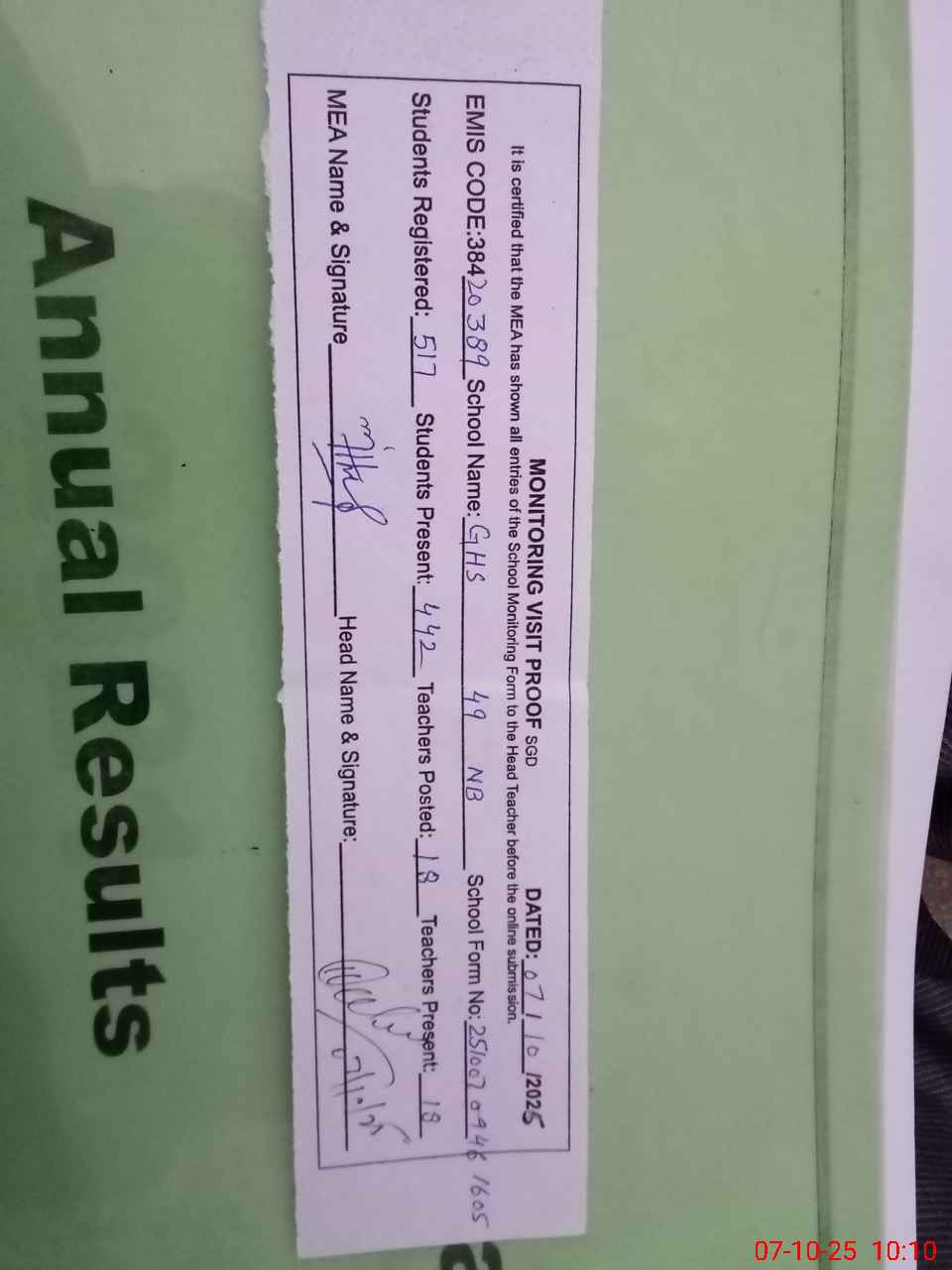 | EMIS Code: 38420389 | Name of School: GHS CHAK NO.49 NB | |||