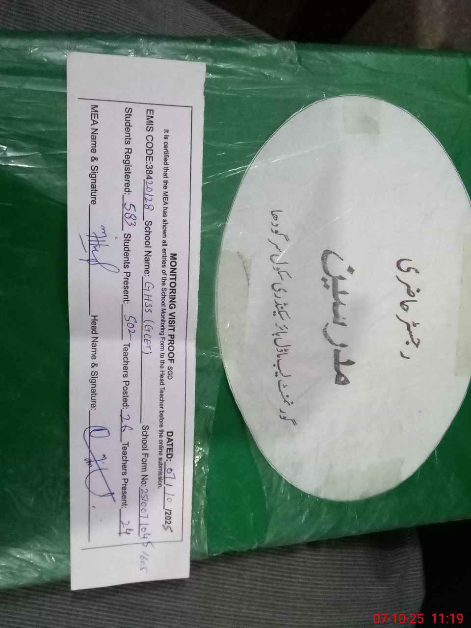 | EMIS Code: 38420128 | Name of School: GHSS SARGODHA (Old name GCET) | |||