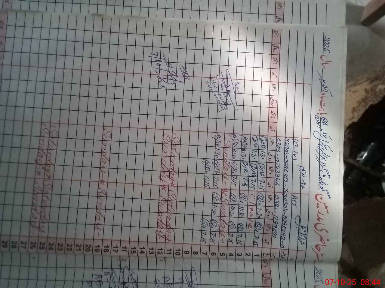 | CNIC | Full Name | Designation | R/C | Absence During Last Calender Month |
