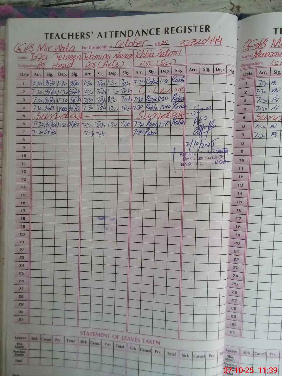 | EMIS Code: 32320444 | Name of School: GGPS MIR WALA | |||