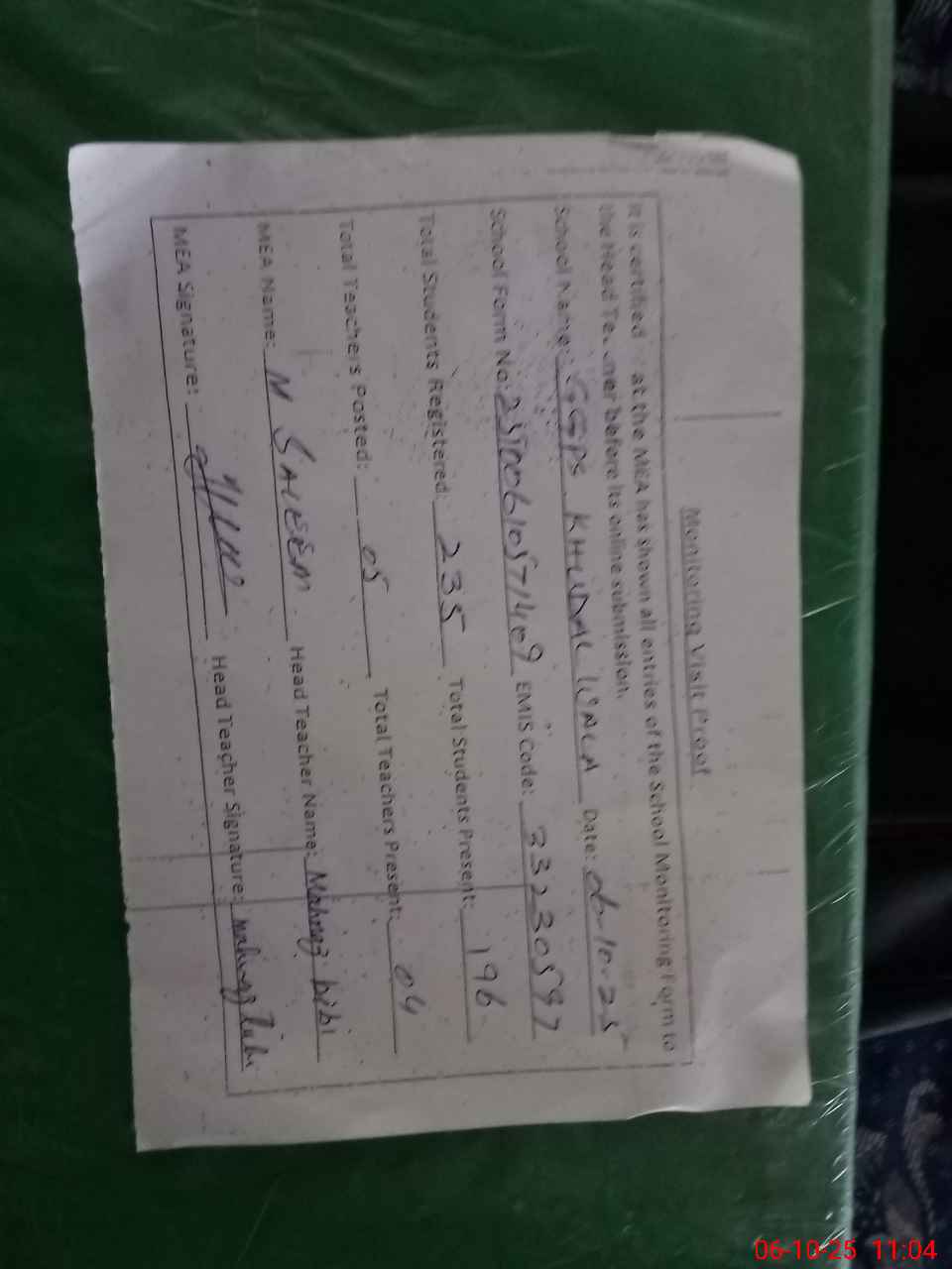 | EMIS Code: 33230597 | Name of School: GGPS KHUDAL WALA | |||