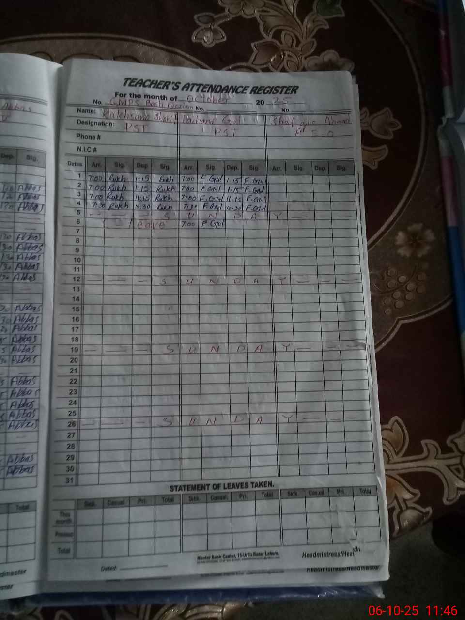| Name: RU**** SH**** Designation: (School Headmaster's/Headmistress's) PST Phone/Cell Number: 03**** |