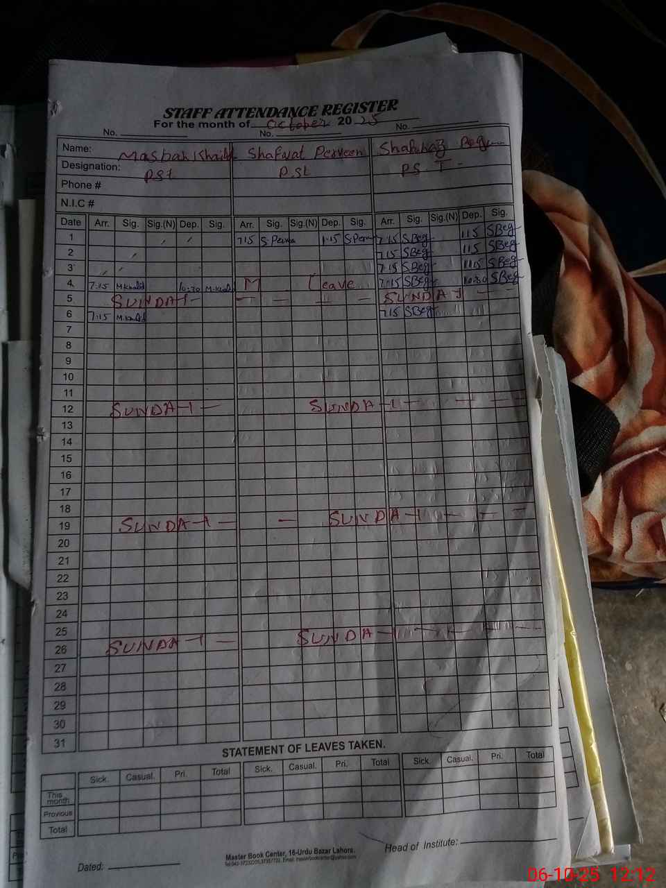 | 33**** | Sh**** Pe**** | 1 | 1 | 0 | 0 | 0 | 0 | 0 | 0 | 0 | 0 | 0 | Absent (Un-Authorized) |