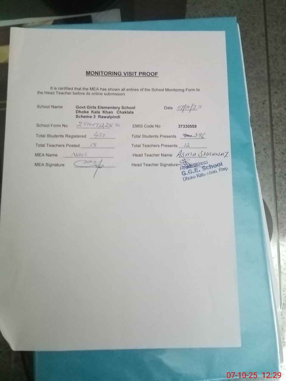 | EMIS Code: 37330559 | Name of School: GGES DHOK KALA KHAN | |||