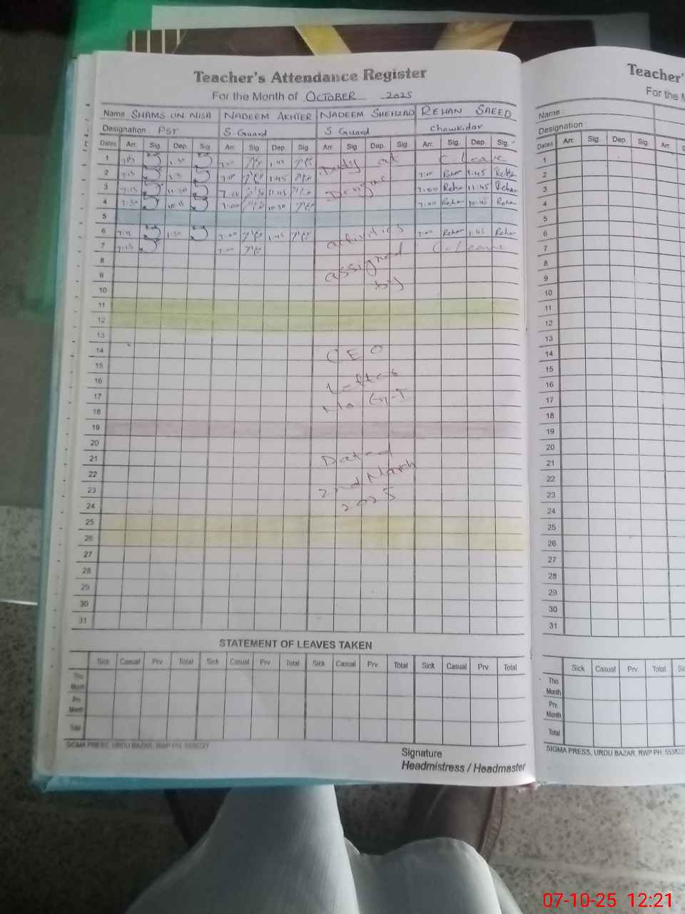 | Name: As**** Sh**** Designation: (School Headmaster's/Headmistress's) Sst Phone/Cell Number: 03**** |