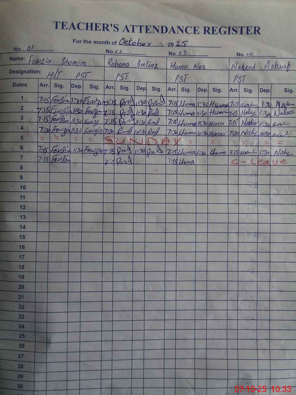 | Name: FO**** SH**** Designation: (School Headmaster's/Headmistress's) PST Phone/Cell Number: 03**** |