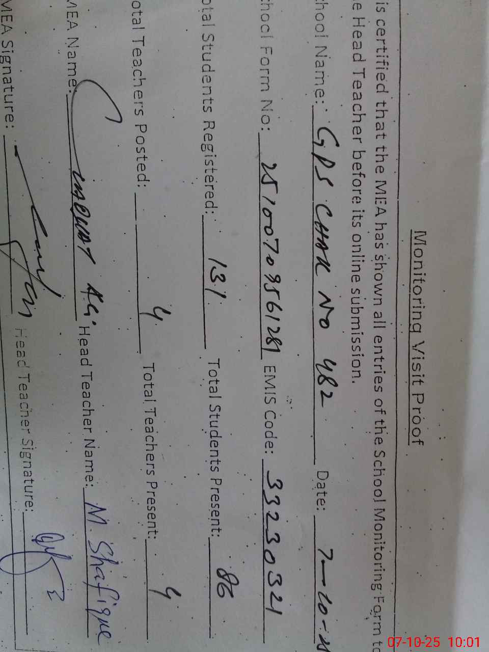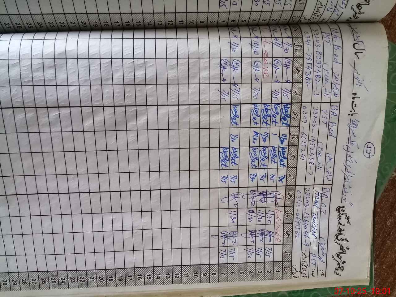| Name: M.SH**** Designation: (School Headmaster's/Headmistress's) PST Phone/Cell Number: 03**** |