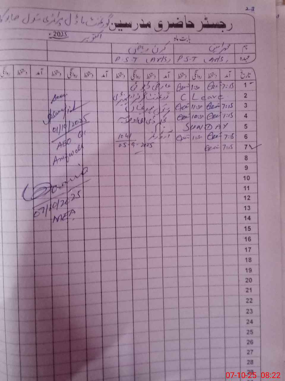 | Name: MU**** AM**** Designation: (School Headmaster's/Headmistress's) PST Phone/Cell Number: 03**** |