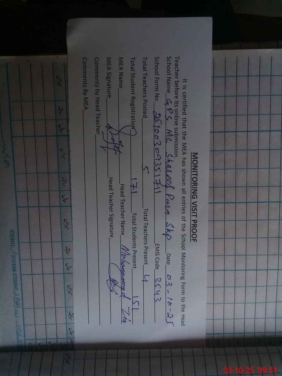 | EMIS Code: 35431169 | Name of School: GPS MC MOHALLAH SHARIF PURA | |||