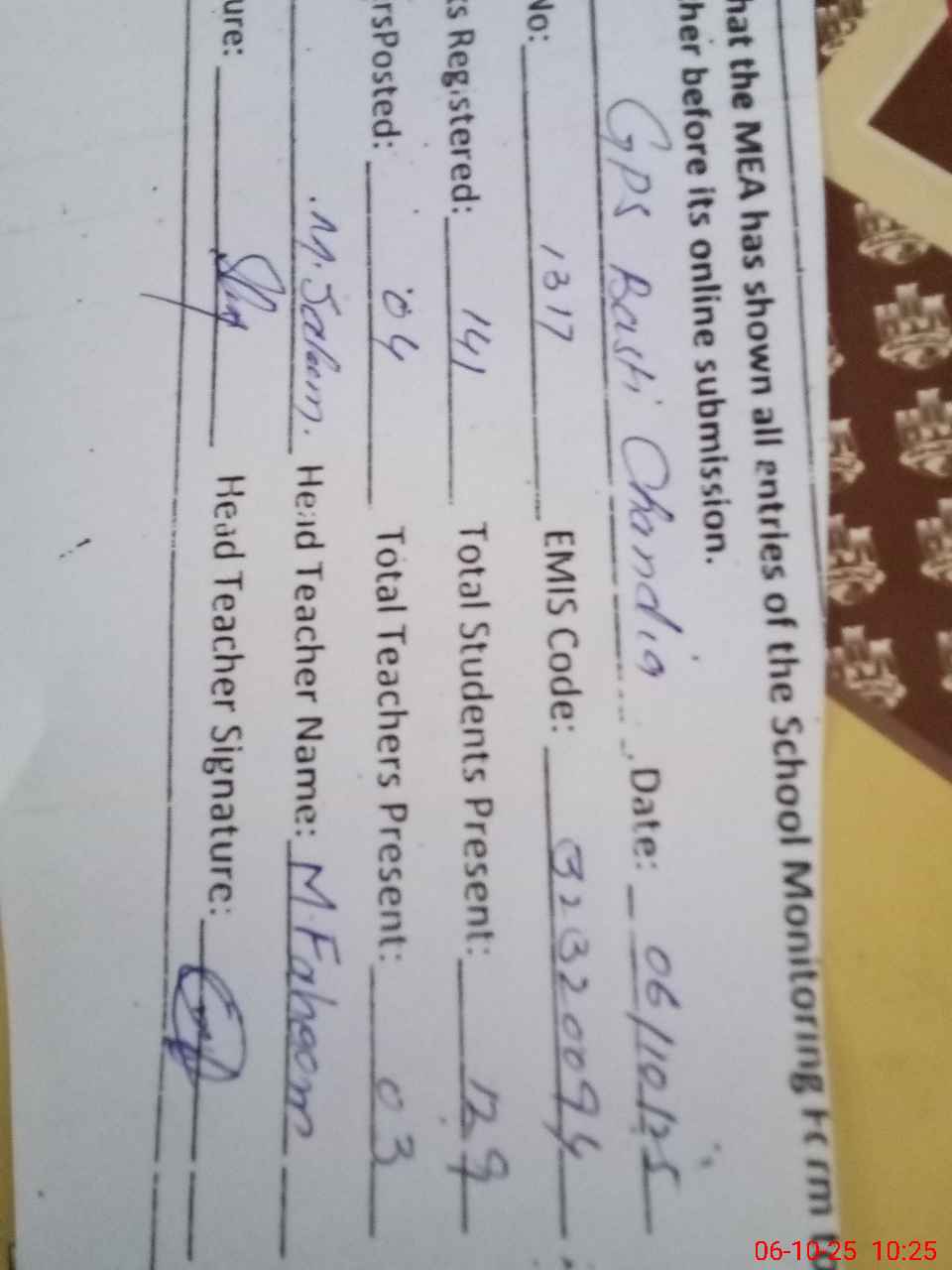 | EMIS Code: 32320094 | Name of School: GPS BASTI CHANDIA | |||