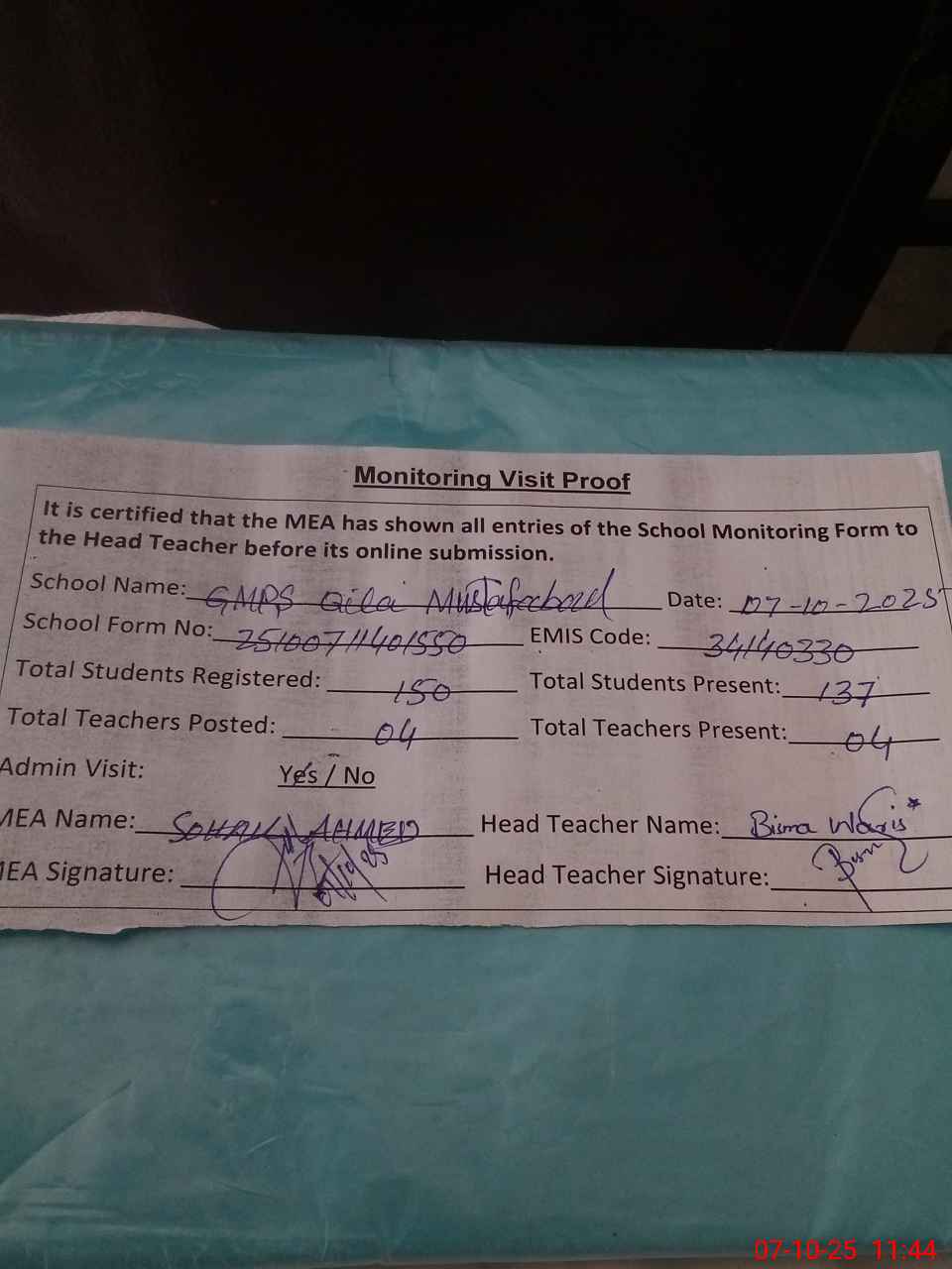 | EMIS Code: 34140330 | Name of School: GMPS QILA MUSTAFA ABAD | |||