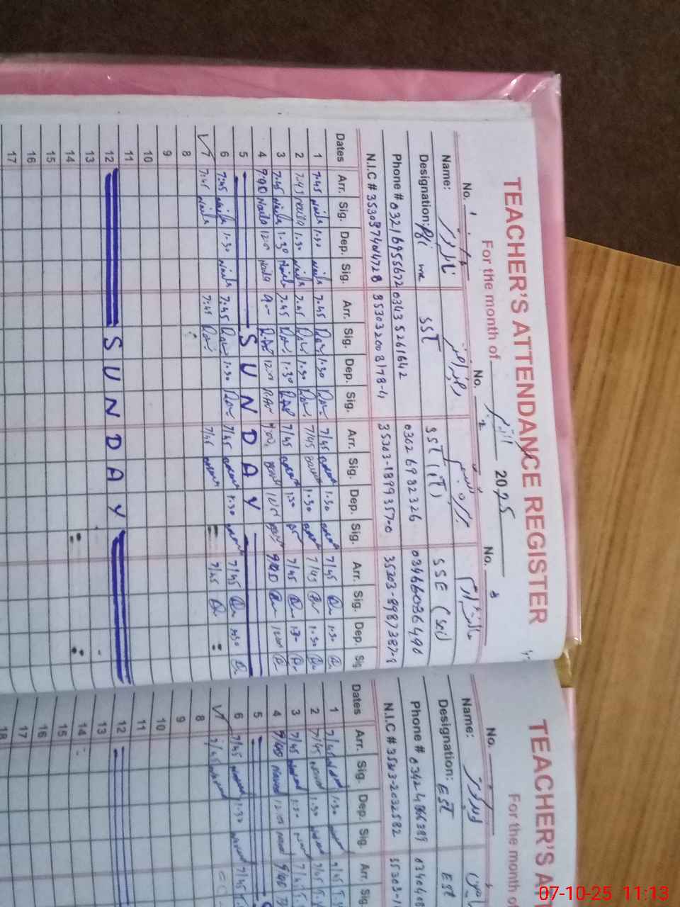 | CNIC | Full Name | Designation | R/C | Absence during last cal. month |