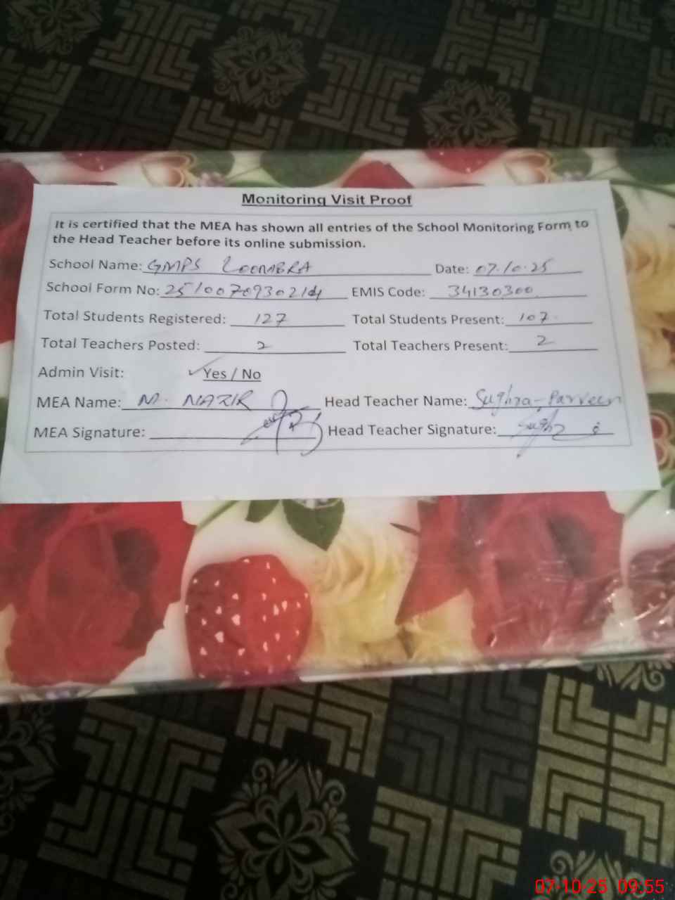| Certified that this School was Inspected by the Undersigned MEA/DMO Today and the Information Stated Above is as Per Record. | |||||