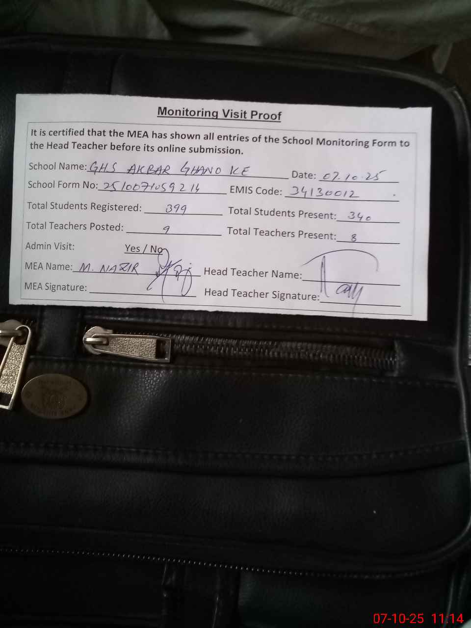 | EMIS Code: 34130012 | Name of School: GHS AKBAR GHANOKE | |||