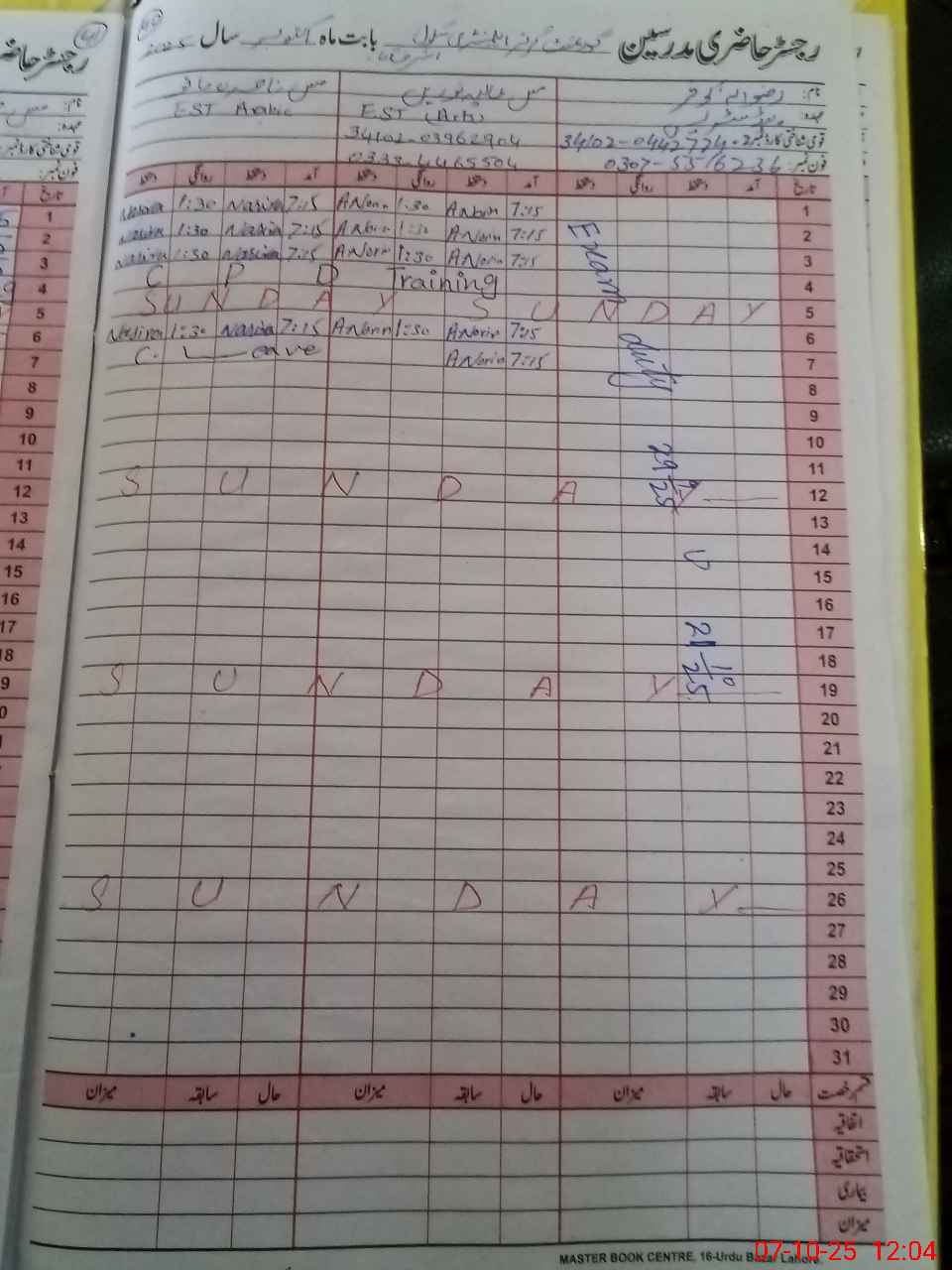 | CNIC | Full Name | Designation | R/C | Absence During Last Calender Month |