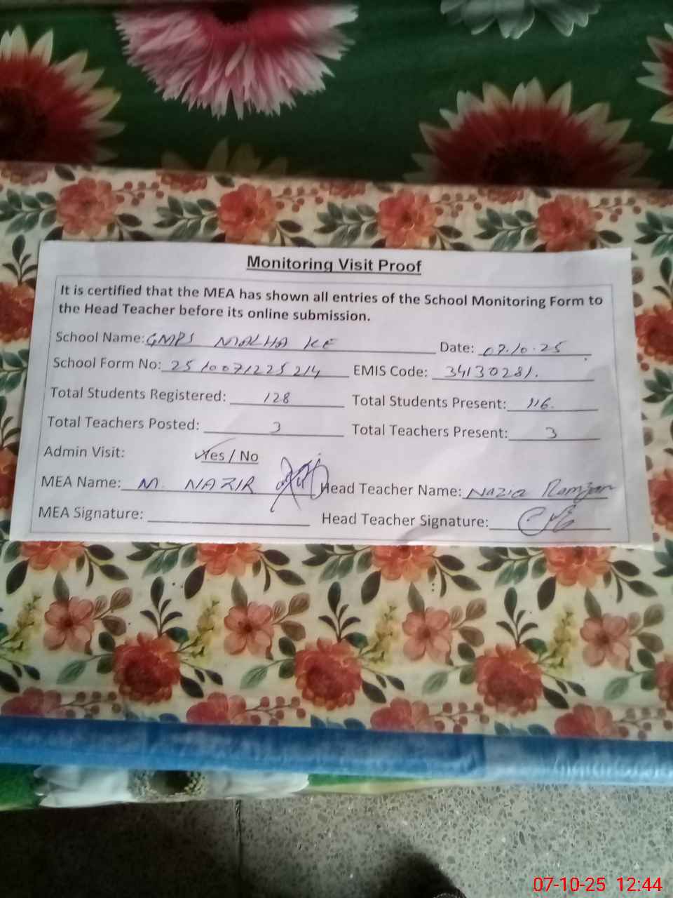 | EMIS Code: 34130281 | Name of School: GMPS MALAKAY VIRKAN | |||