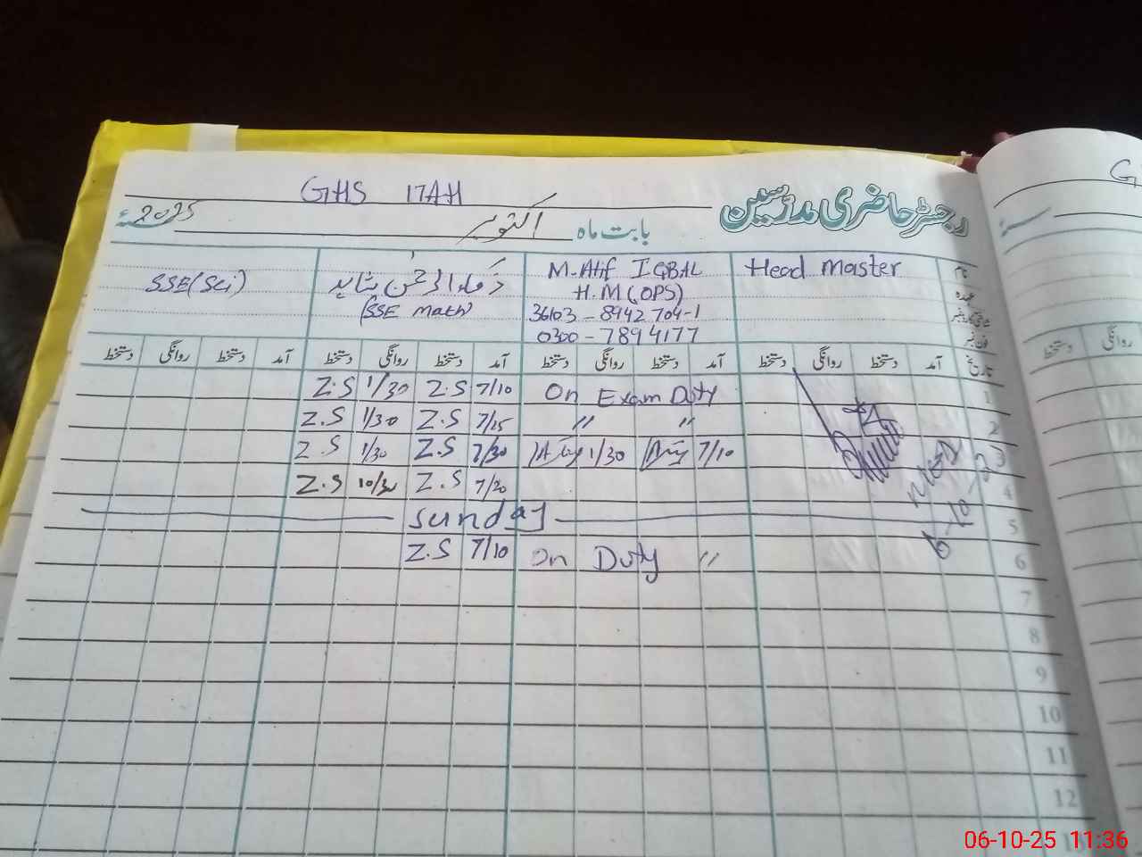 | Name: MAT**** IQ**** Designation: (School Headmaster's/Headmistress's) HM Phone/Cell Number: 03**** |