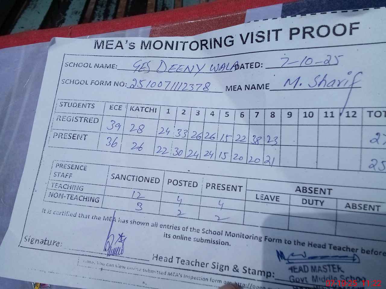 | EMIS Code: 36420072 | Name of School: GES DENAY WALA, KHANEWAL | |||