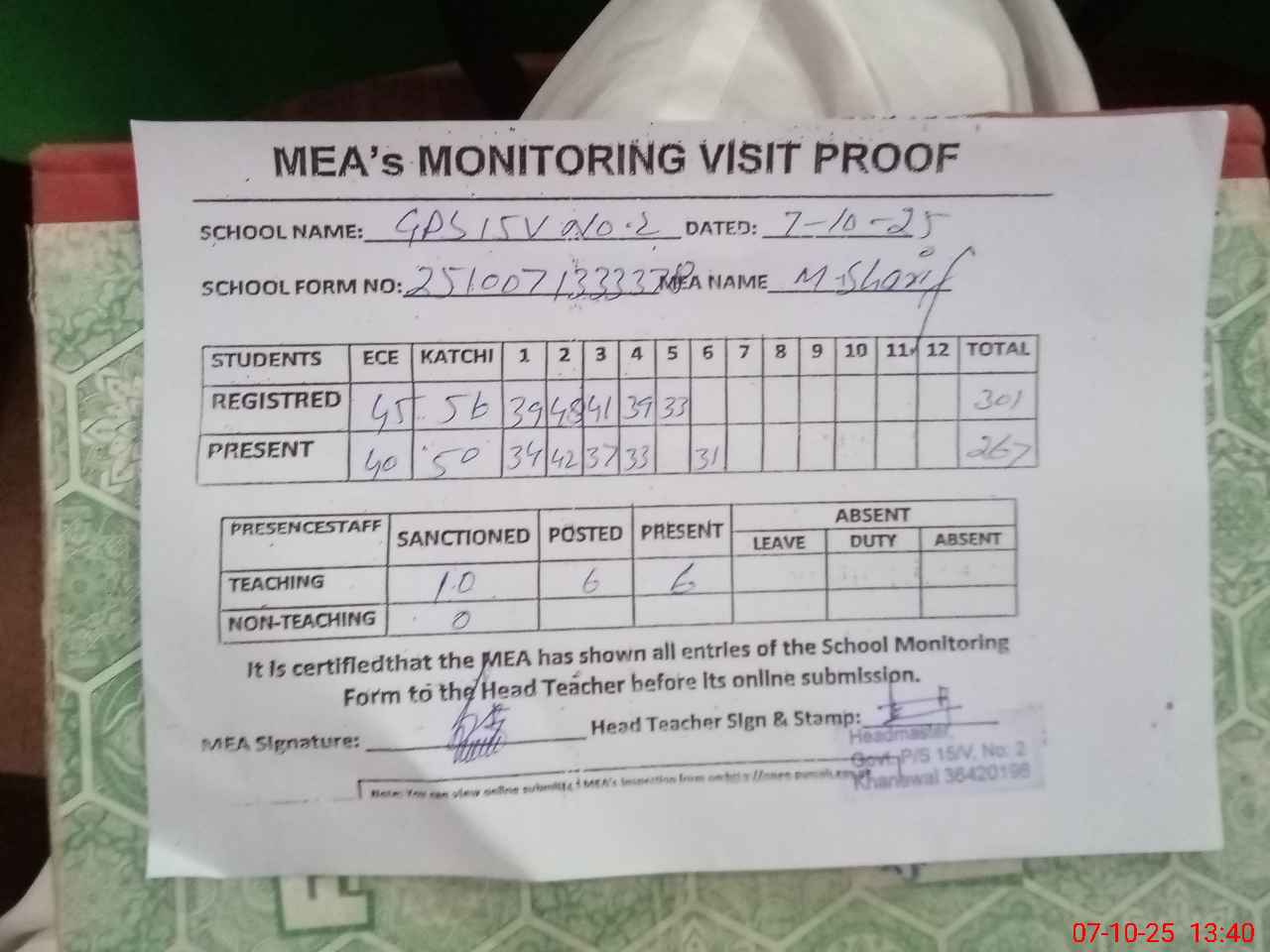 | EMIS Code: 36420198 | Name of School: GPS 15/V NO.2 KHANEWAL | |||