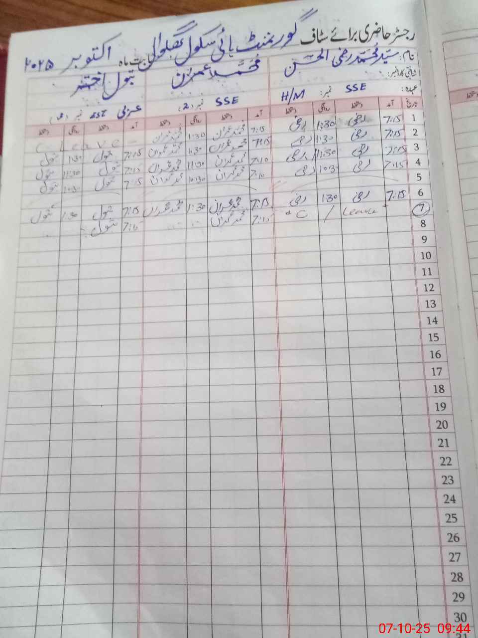 | CNIC | Full Name | Designation | R/C | Absence During Last Calender Month |