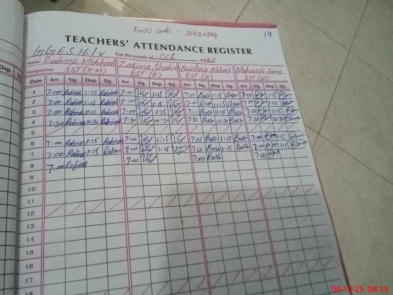 | 36**** | Ay**** Na**** | PST | Regular | 4 | 0 | 0 | 0 | 0 | 0 | 0 | 0 | 4 | Casual |
