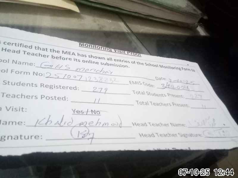| EMIS Code: 34120016 | Name of School: GHS MANCHER CHATHA | |||