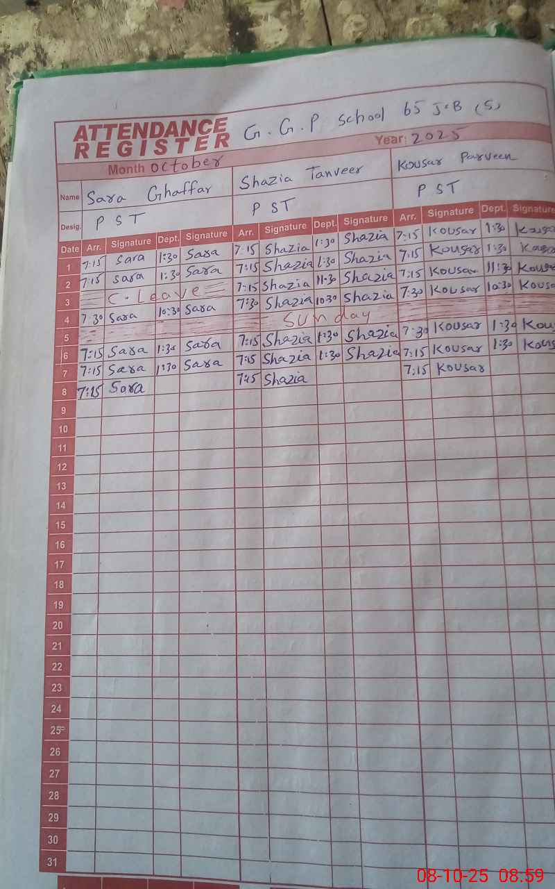 | Name: SA**** GH**** Designation: (School Headmaster's/Headmistress's) PST Phone/Cell Number: 03**** |
