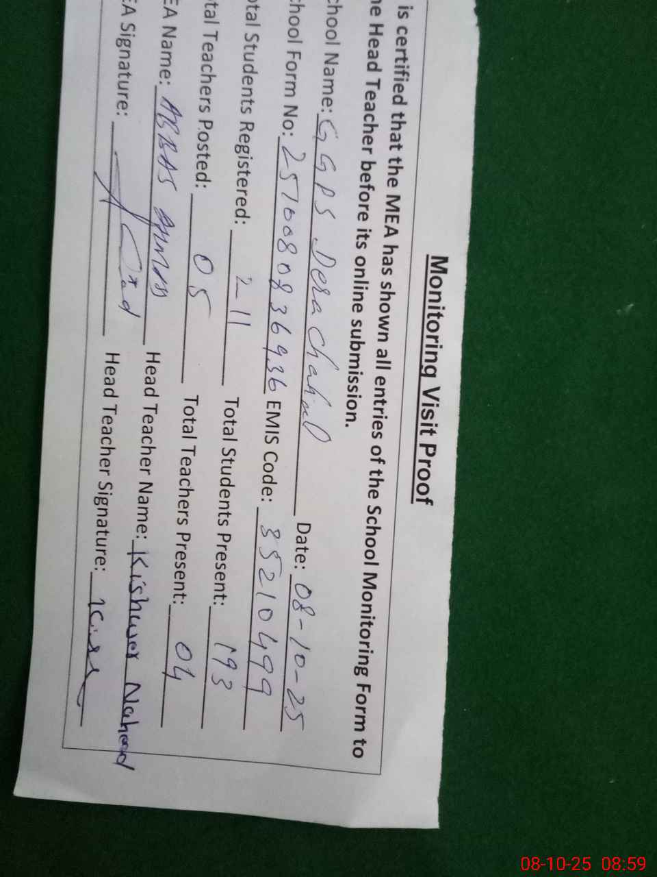| EMIS Code: 35210499 | Name of School: GGPS DERA CHAHAL | |||