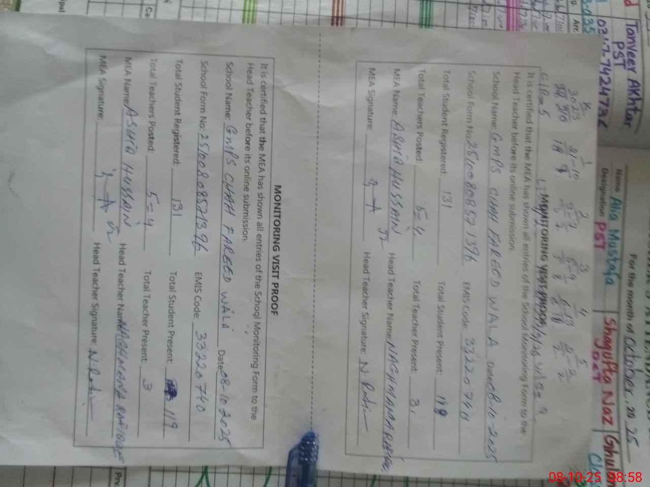 | EMIS Code: 33220740 | Name of School: GMPS CHAH FAREED WALA | |||