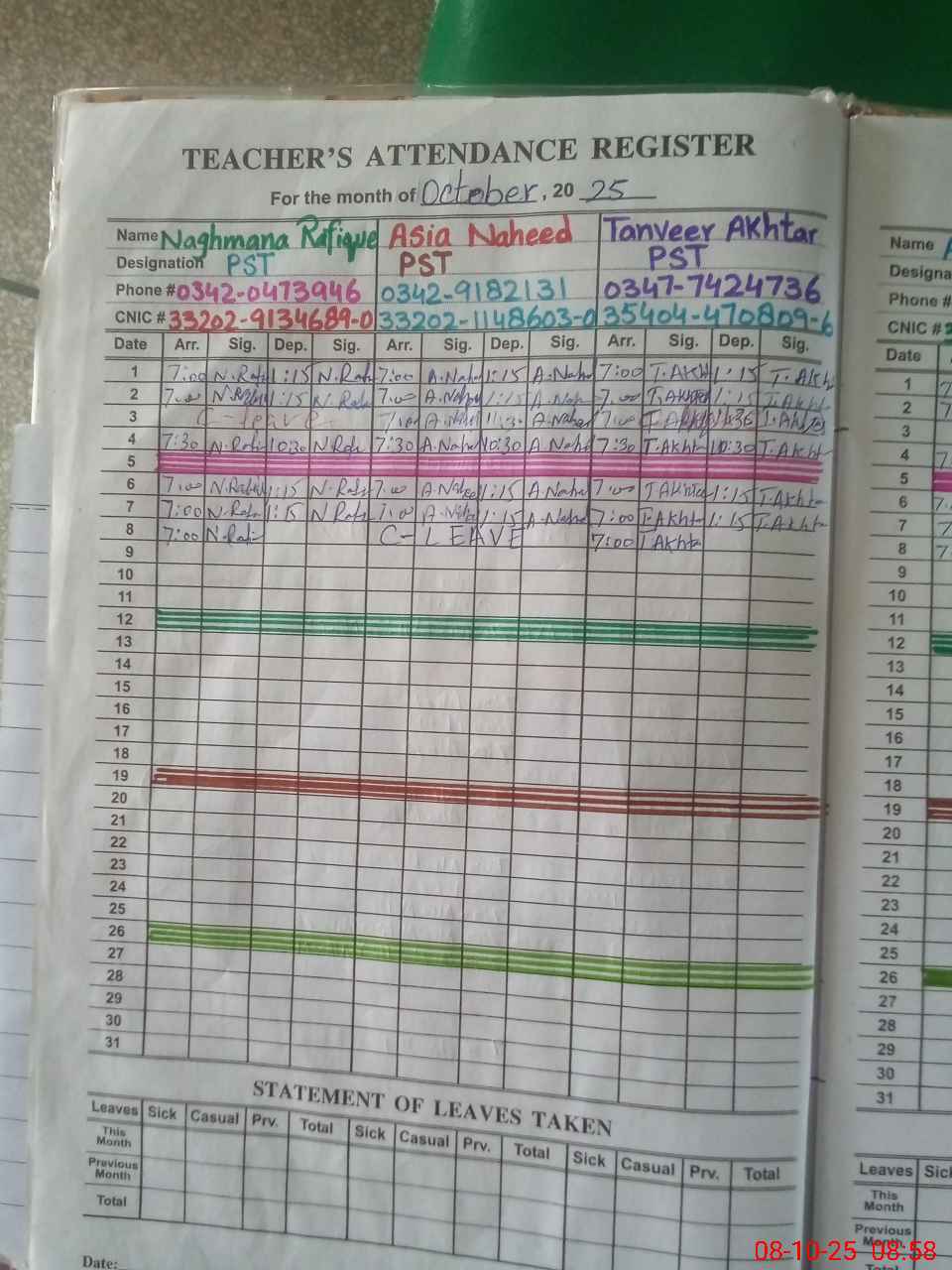 | Name: NA**** RA**** Designation: (School Headmaster's/Headmistress's) PST Phone/Cell Number: 03**** |
