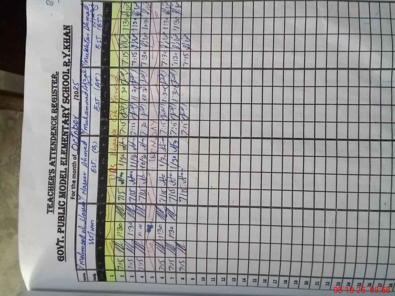 | Name: Na**** Ah**** Designation: (School Headmaster's/Headmistress's) EST Phone/Cell Number: 03**** |