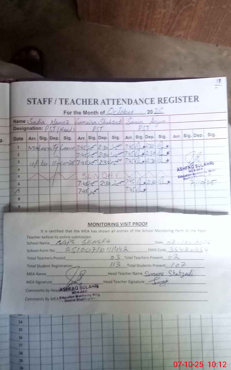 | Monitoring Date: 07-10-2025 | Start Time: 07-10-2025 09:25 AM | End Time: 07-10-2025 10:14 AM | Name of MEA: Mu**** As**** | |