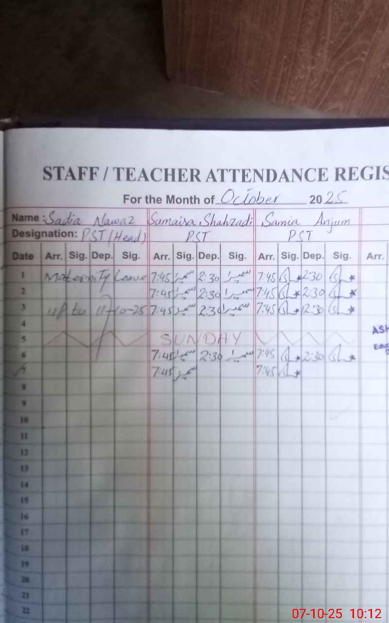 | 34**** | Sa**** Na**** | PST | Regular | 30 | 0 | 0 | 30 | 0 | 0 | 0 | 0 | 0 | Maternity |