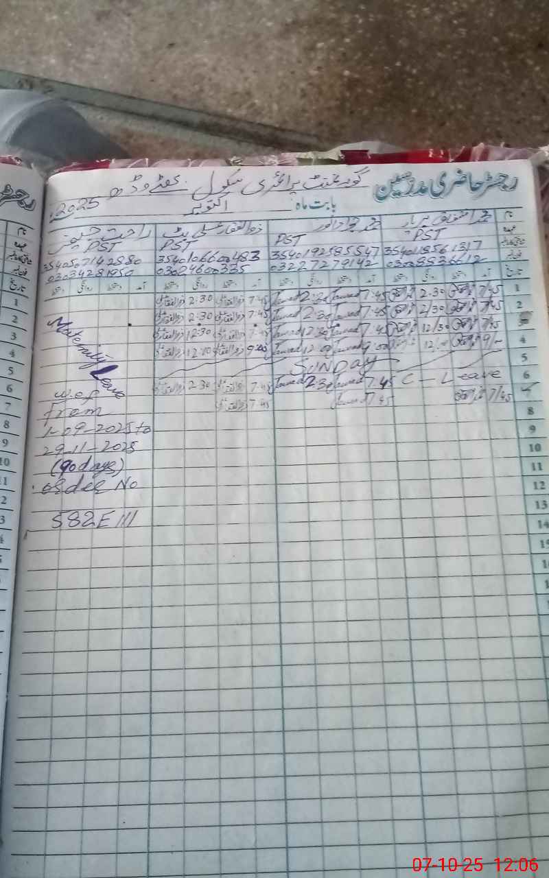| Name: Mu**** Ja**** Designation: (School Headmaster's/Headmistress's) PST(Science) Phone/Cell Number: 03**** |