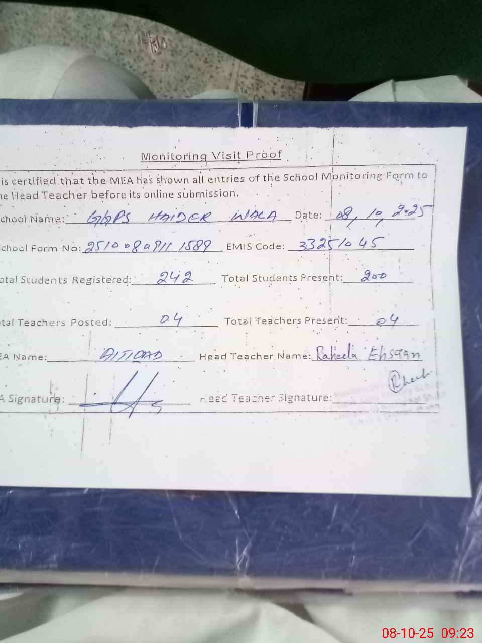 | EMIS Code: 33251045 | Name of School: GGPS HAIDER WALA | |||