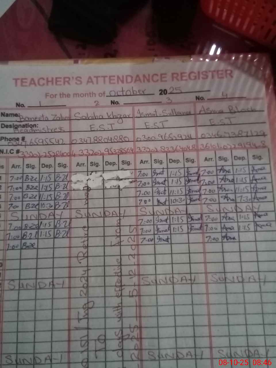 | Name: BA**** ZA**** Designation: (School Headmaster's/Headmistress's) SSE. ENG Phone/Cell Number: 03**** |